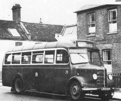 No 71 (CRD 594) was a petrol engined Bedford OB. It is seen here parked outside Mill Lane depot 1961. It had a Mulliner body and was withdrawn in 1963